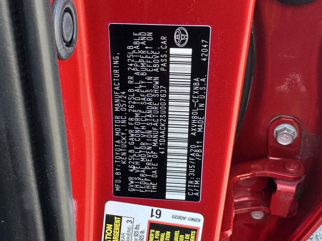 2.5L 4-Cylinder 16V DOHC, Black w/Fabric Seat Trim. Certified. Supersonic Red 2025 Toyota Camry LE FWD eCVT 2.5L 4-Cylinder 16V DOHC